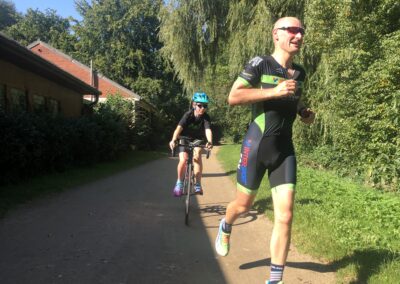 Im September wurde es dann noch mal richtig stressig, wollten wir den ausgefallenen TripleTri nachholen, den SwimRun ebenfalls nachholen und hatten wir „laut Plan“ noch unseren BikeRun auf der Störlaufstrecke auf dem Wettkampfplan… Beim SwimRun in der Nordoer Heide war nicht so viel los und das Wetter war ausnahmsweise mal nicht so auf unser Seite, aber unvergessen diese Bilder (und die Blicke der Spaziergänger – warum laufen die hier in einem komischen schwarzen Anzug und mit Badekappe und Brille auf dem Kopf durch den Wald). Viele waren zum ersten Mal bei einem SwimRun dabei und waren vom Format begeistert. Wiederholen wir auf jeden Fall!