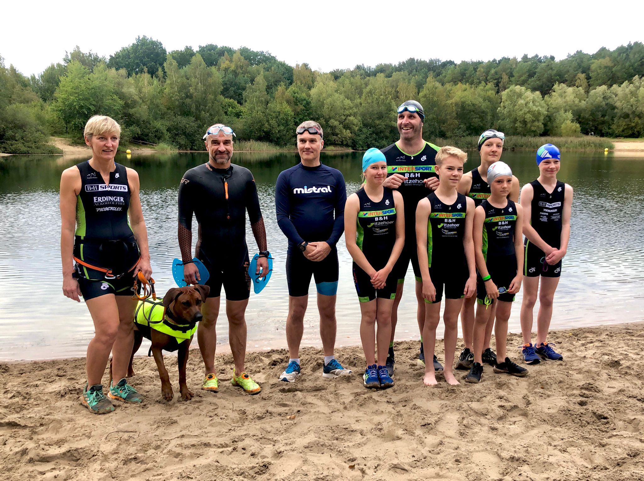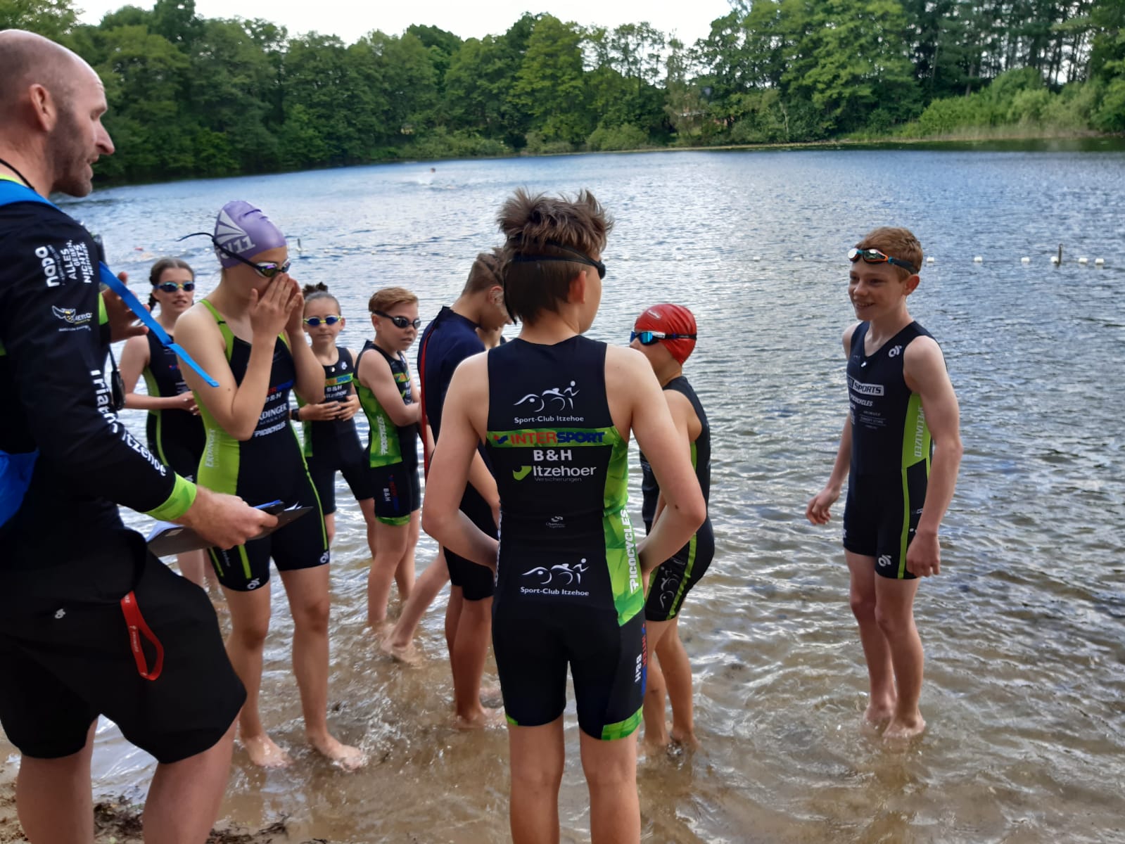 Zwei Tage später sind wir dann noch mal in Schenefeld aktiv gewesen. Das Wetter meinte es immer noch nicht so gut mit uns und so wurde aus dem geplanten TripleTri eine normale Volksdistanz bzw. ein Kids Triathlon. Alle haben sich super durchgekämpft und zeigten sich von dem Luisenbad und den Strecken begeistert!!